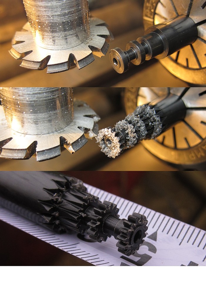 Konkrétně mám problémy s ozubenými koly které frézuji dělícím způsobem. Je jedno zda to provádím sousledně nebo nesousledně, výsledkem vždy je "chlupatá" hrana zubu v místě kde fréza vyjíždí z materiálu