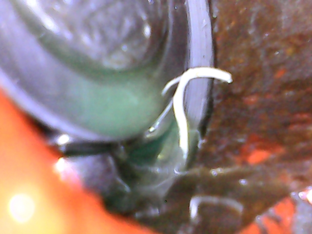 pozůstatky z ložiska na spojce .. patrný "umělecký zásah" zůstala tam část klece s kuličkama