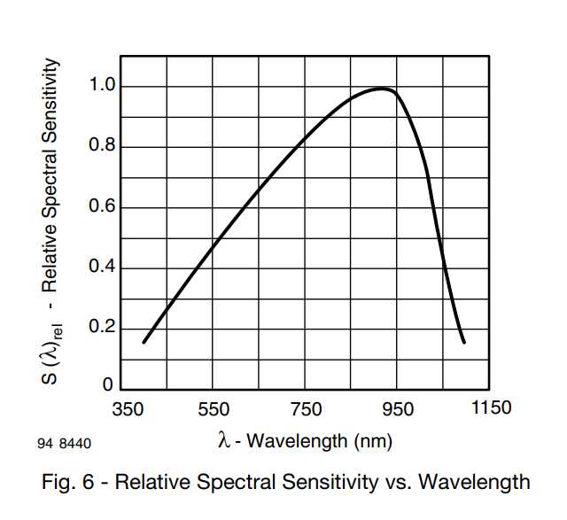 V příloze je citlivost na vlnovou délku u běžné PIN fotodiody BPV10 od Vishay. Je to ještě míň citlivé než fototranzistory, takže v celém uvažovaném rozsahu 850-950nm je ta citlivost prakticky stejná. Pokud už by ses přece jen chtěl upínat na vlnovou délku (podle mě úplně zbytečně), tak si kup detektor raději pro delší vlnu, protože citlivost směrem k vyšší vlnové délce klesá rychleji než směrem k nižší.