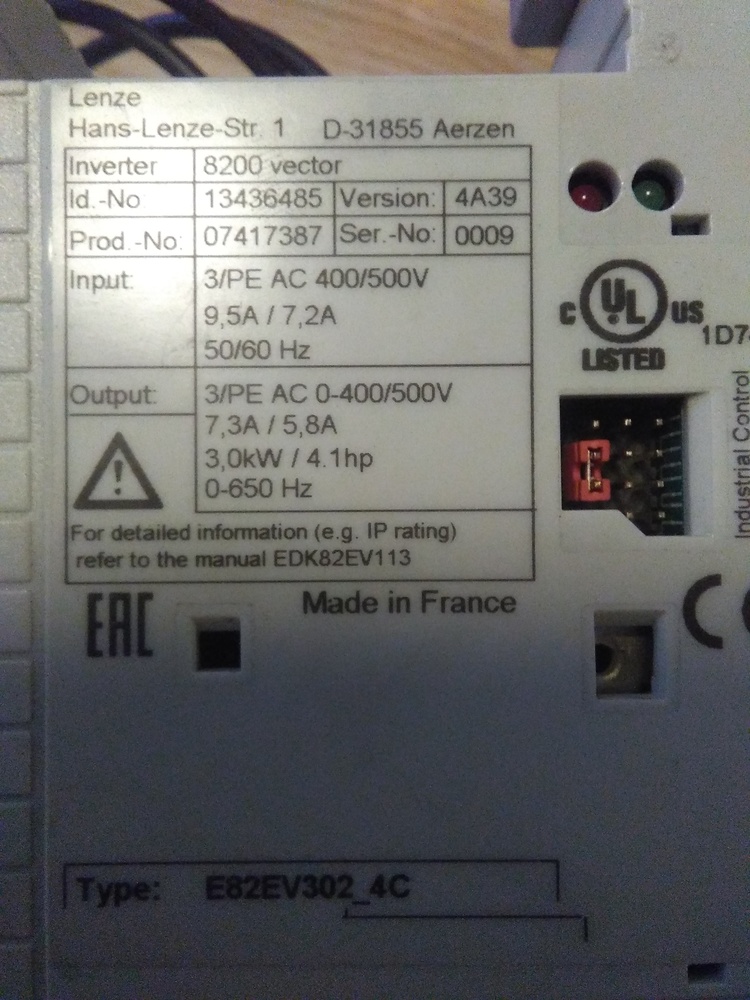 Nabízím frekvenční měnič Lenze 3kW E82EV302_4c - nový + ovládací panel EMZ9371BC - ten je použitý. Vyzkoušený, funkční.