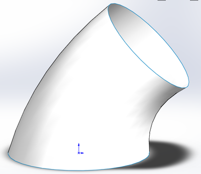 Když vytvoříš na koncích kolene kružnice, tak by měla být v CADu funkce, která tažením křivky (té kružnice) vytvoří plochu/těleso. Spojnice mezi kružnicemi je vodící trajektorie, a površka (křivka mezi velkými průměry kružnic) je tvořící trajektorie. Pokud to nepůjde vytvořit jako těleso, tak bych to udělal jako plochu. Rotací profilu to, obávám se, nepůjde.