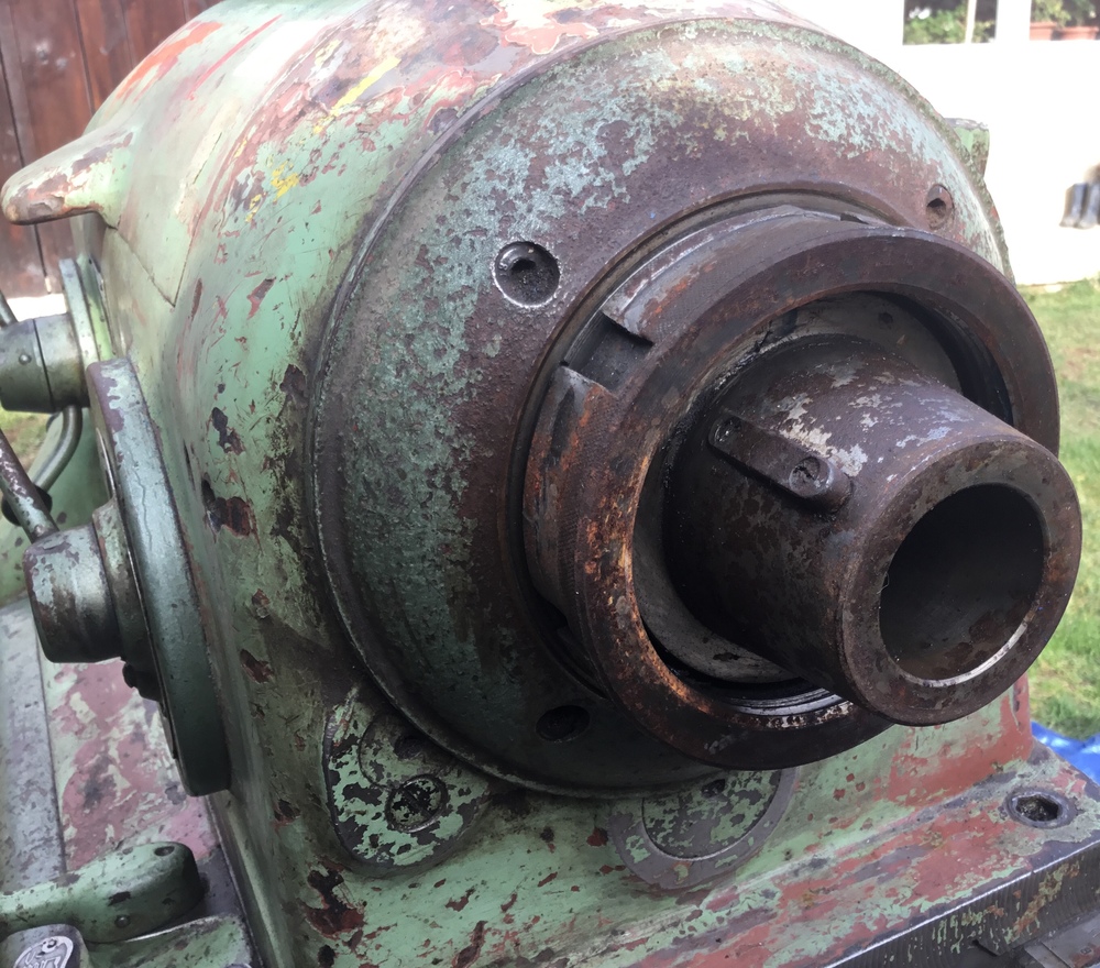 Je to MAS SN 20 A, to je už modernizovaný SN 20. Modernizace je v použití uzavřené Nortonovy skřííně a použití amerického kuželu vřetene s přitahovací matkou a kaleného lože. Příruba se bude asi těžko shánět, výskyt SN 20 A je přeci jen o něco řidší než starších SN 20. Na řemenici vřetene chybí 2 řemeny, ale klidně s tím vystačíš, pokud nebudeš brát ty největší špony. A.
