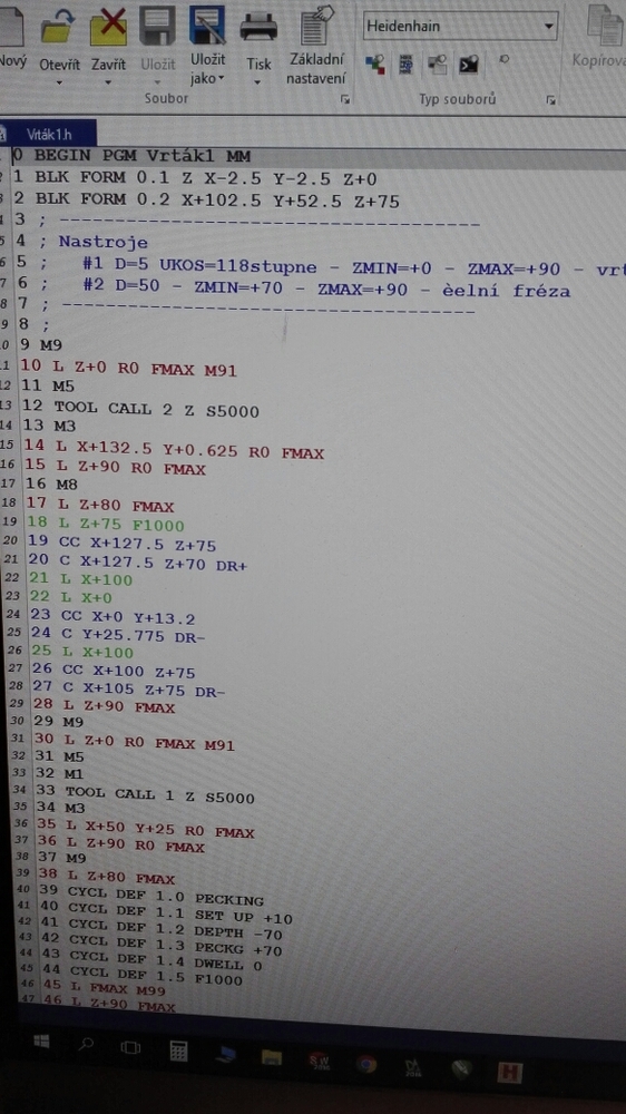 A nechýba ti ešte M6 pred výmenou nástroja ? To nie je stroj z automatickou výmenou, kedysi dávno som na ňom krátko robil, mala by tam byť M6 - ak si dobre pamätám.