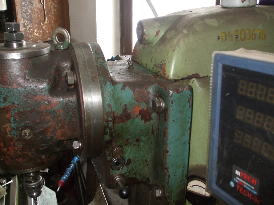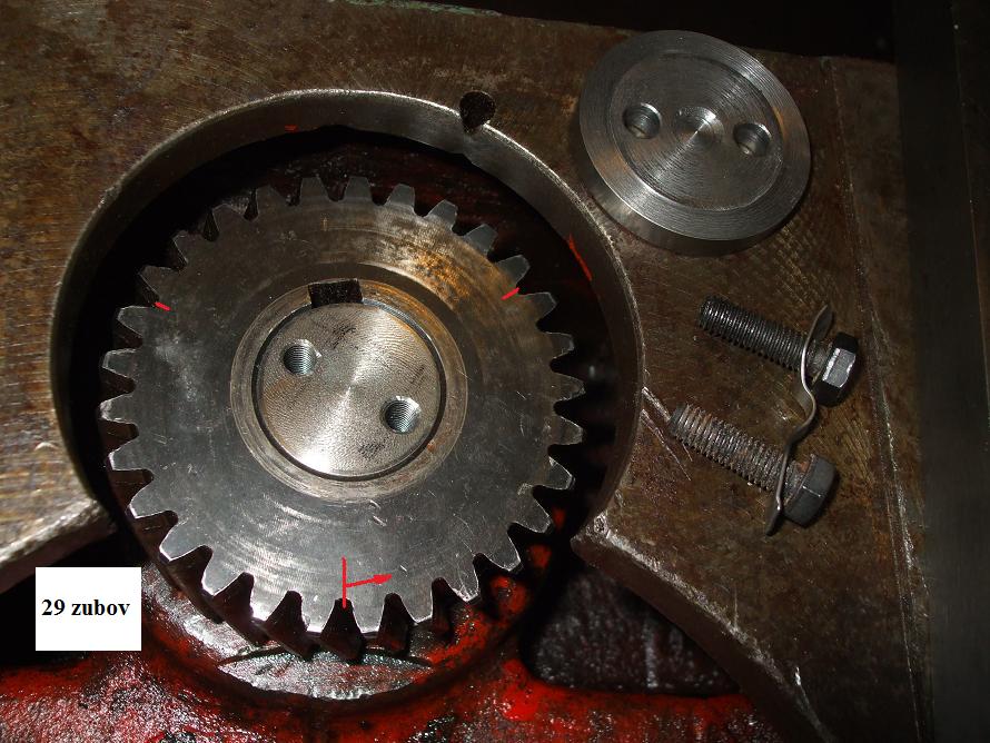 Ešte- raz som zrovna potreboval dorobiť nejakú zákazku, sa ozvali hrozné zvuky z hlavy- suché škrípanie kov na kov, no hrúza! Hlava horúca, a trebalo mi dorobiť posledné 2 ks, no musel som to vypnúť. Myslel som, že ložisko, mám síce náhradnú hlavu, ale tá bola tiež rozobraná (je doteraz :lol: :lol: ) Hlavu som zhodil, a bola to taká banalita- na tých kuželíkových ložiskách na náhonovej hriadeli sú z každej strany nalisované krúžky (krytky), Jeden sa vysunúl, a začal drieť o valcovú časť ozubeného kola- na fote je to vidieť. No krúžok som zarazil nas5, a narezal dva M5, a skrutky zaistil cez hlavičky drôtikom.