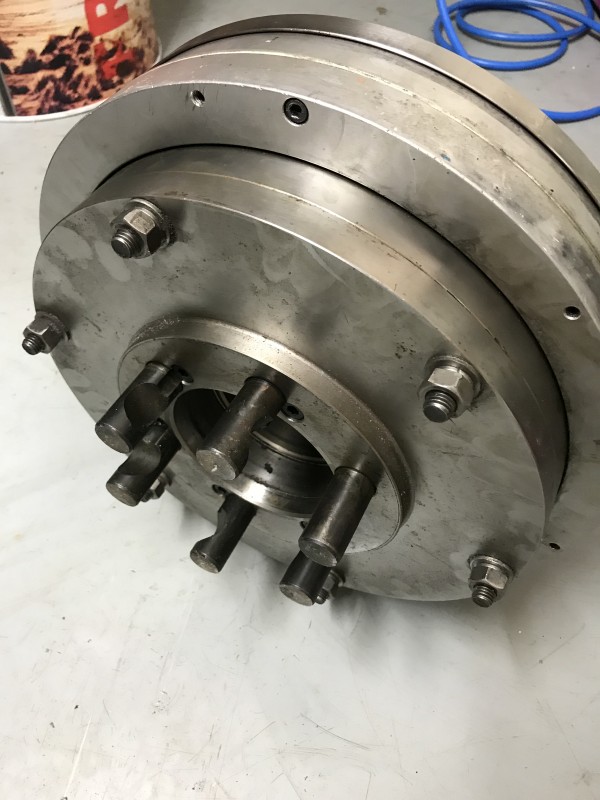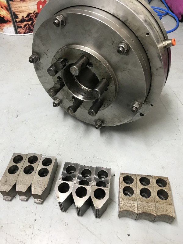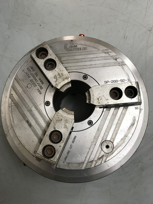 Vyměním pneumatické sklíčidlo Smw Autoblok SP 280-92-3 (Průměr 280, vrtání středem 92 mm) za menší. Například průměr 160 nebo 200 mm. Možno i jiný výrobce (kitagawa, schunk, Röhm, apod.) Ale musí být pneumatické. Mám k němu jedny tvrdé a 3 sady měkkých čelistí. Příruba D1-6 Camlock.