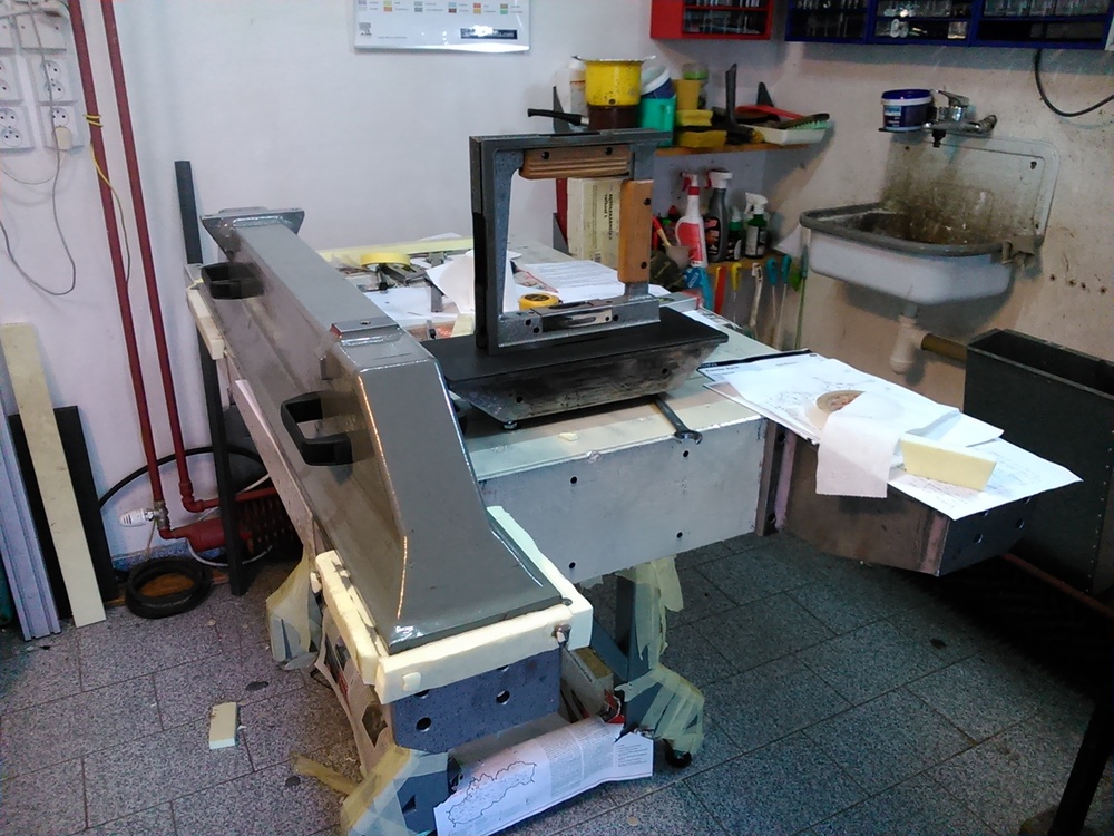 Mám pár možností jak to napravit, ale jako první jsem zvolil tu nejjednodušší a to vylití ploch pod kolejnice polyuretanem Smooth-Cast, který se jeví zatím jako fajn materiál. Tvrdost je podle ShoreD 70-85 podle typu a co se týče pevností 5mm vrstvy asi 50mm široké a 2000mm dlouhé odlité drážky, tak po dotažení kolejnice na předepsaný moment pevnostními šrouby (nemám referenční hranu a nemám ji ani jak udělat), tak se plast nepohnul, neprasknul, neotlačil, prostě nic. Není to ideální řešení, ale jiné ani není. Původně jsem myslel, že se to samozniveluje, ale na to je třeba zapomenout. Materiál je sice hustý asi jako sirup, takže se krásně rozlije, ale rovnou plochu nevytvoří. Navíc občas vzniknou bublinky a ty pak dělají binec. Každopádně se to velmi dobře obrábí žiletkou. Jednoduchým zaškrábaním jsem se dostal na úroveň 0,03mm na celé délce 2000mm. Pokud seženu přesnější pravítko, tak to půjde krásně doladit.