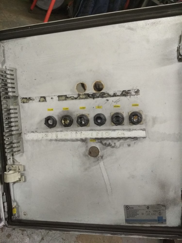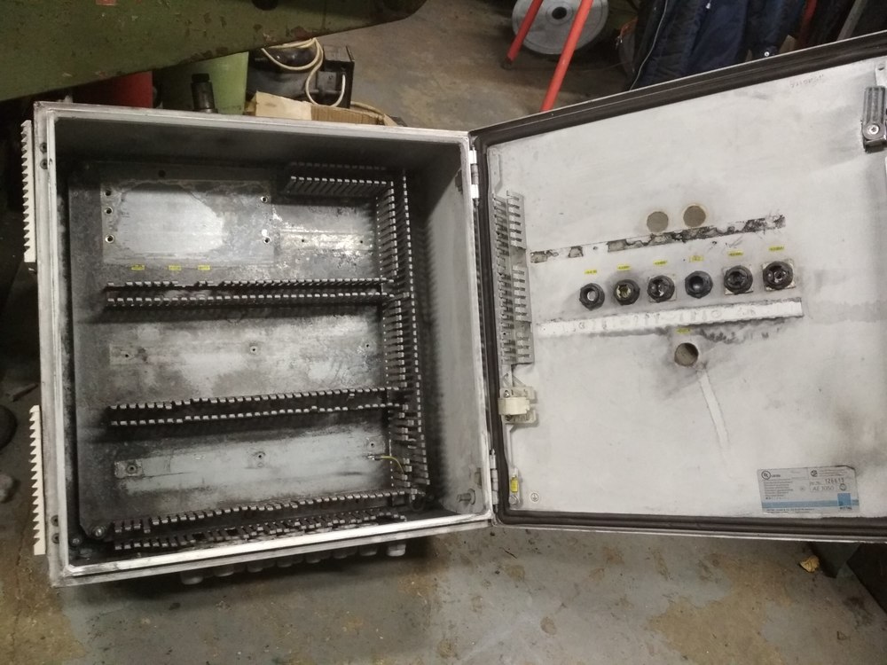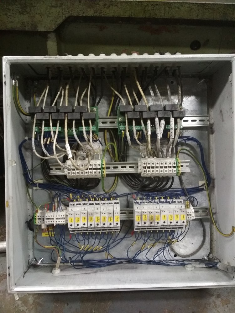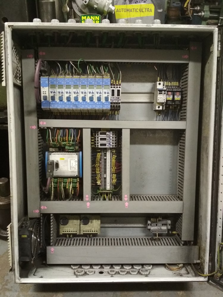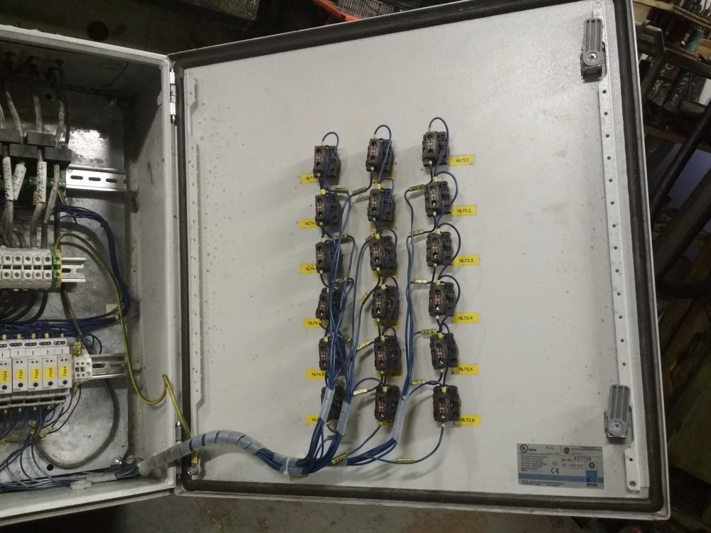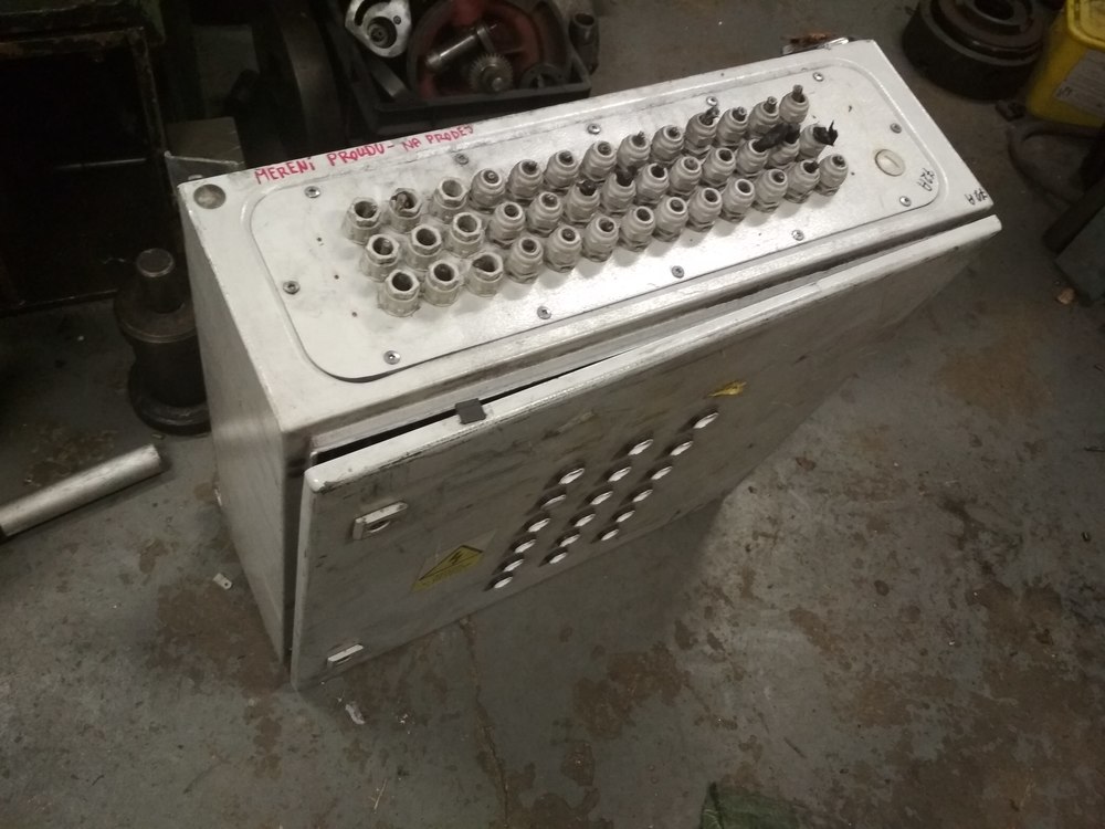 Elektro skříně (13x PID teplota, 16x měření proudu, 2 prázdné bedny)