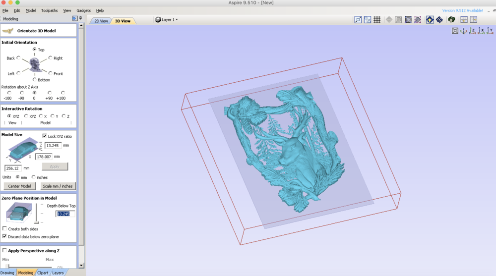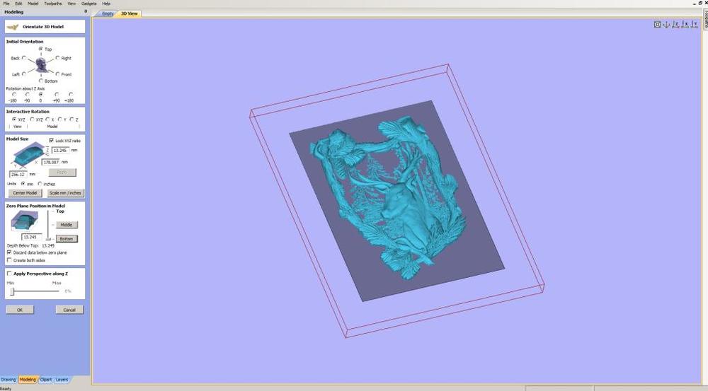 Mam Este otazku, Mam material hruby 40mm. Tento relief ma hrubku 13.245. Ako nastavim Aspire, aby som ten relief vyfrezoval do materialu s hrubkou 40mm tak, aby to bolo presne tak, ako je to nakreslene, mam na mysli medzi tymi stromami, konarmi je prazdno.