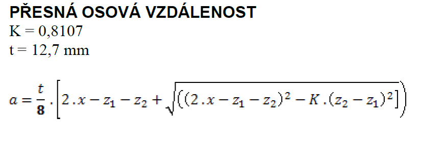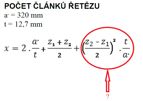 Zdravím, chtěl bych pouze poprosit o vysvětlení vzorců na obrázku, u vzorce pro výpočet počtu článků řetězu nerozumím té druhé části a u vzorce pro výpočet přesné osové vzdálenosti my nedává smysl prakticky nic. Pokud by jste někdo měl chvilku, byl bych rád za nějaké polopatické vysvětlení. Díky. :D