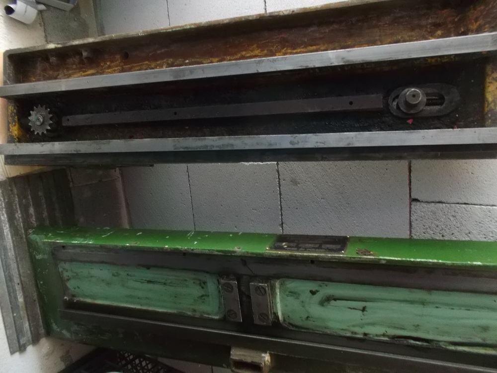 podarilo sa mi ze srotu zachranit torzo z brusky OLNF-7. Bruska bola rozobrata, hodena na kope srotu. V podstate chyba motor, retaz, jedno ozubene kolecko, na posuv stola.