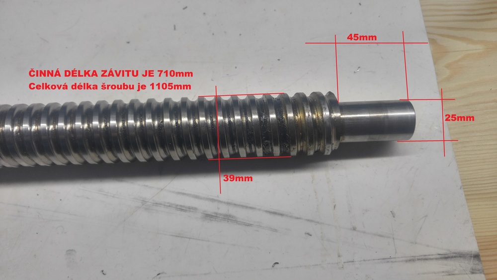 Nechtel by nekdo tento sroub viz foto? V praci nam na centru prijel servis vymenit motor osy Z a vramci toho pry musely vymenit i sroub. Mel by byt v poradku. Rozmery viz foto. Rekneme za 1000,-. Urcite lze poslat postou, nebo do Prahy mohu zajistit dopravu zdarma. Jsem od C.Budejovic. Jo a stoupani je 10mm.