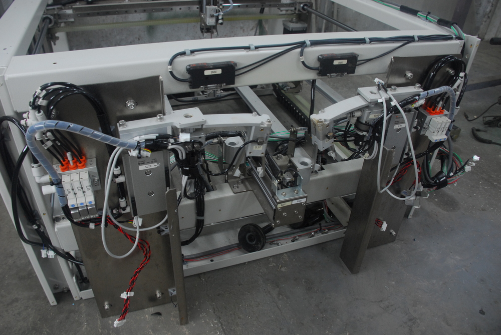 Jak jsem řekl, tak jsem udělal, vykuchnul jsem ten cnc vehement. Spodek byla jen bedna, tu jsem tam nechal, byla těžká a pomačkaná, v tý kostře je všechno. Je překvapivě těžká a tuhá. Je montovaná z C a U profilů. Akční rozsah je 60x60cm. Moc času jsem na průzkum neměl. Největší štítek mám 50cm, takže kdyby se to podařilo nějak spustit, to by byla věc