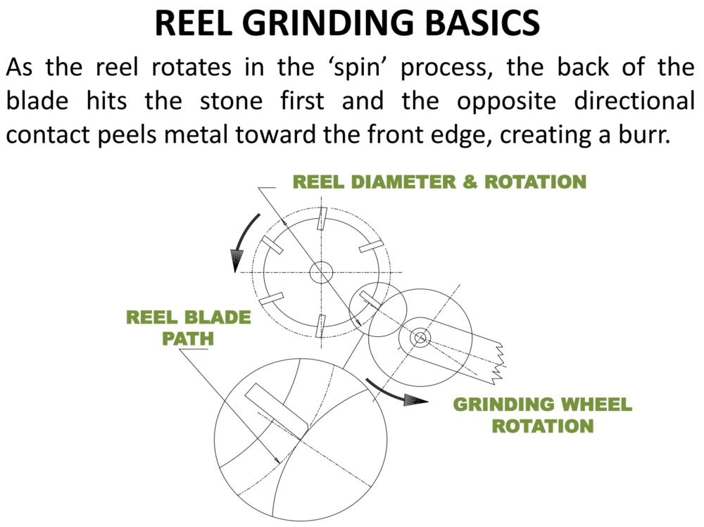 1. rovinné brúsenie spodného noža 5° vrchný uhol a 5° predný uhol: 2. brúsenie na guľato vretenového noža. Predná fazeta cca 1mm kolmo na os otáčania brúsi sa proti smeru otáčania ako pri kosení a následne 20° uhol: Princíp: Bez presného brúsenia sa mi nepodarí nastaviť medzeru medzi nožmi po celom obvode a dĺžke a tým pádom to nestrihá trávu. Samozrejme môžem to nastaviť tak že sa budú nože dotýkať ale to je už iný rachot kov o kov a tiež záťtaž na motor, pretože odpor pri točení vretenom neúmerne vzrastie a živostnosť ide dole vodou