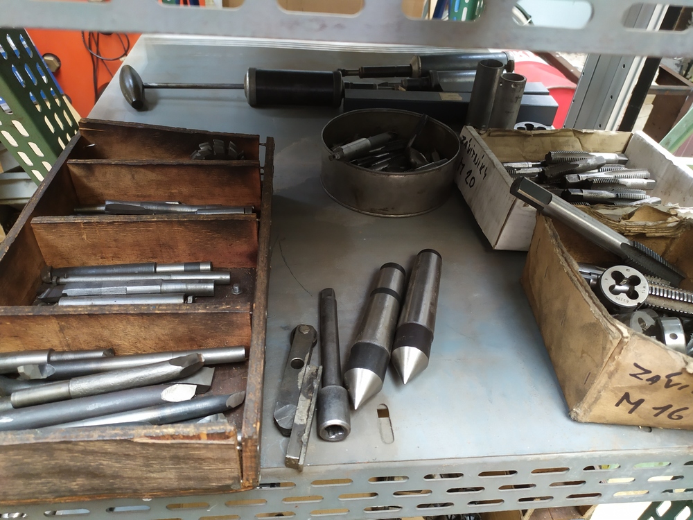 Po mě tam zůstaly velký vrtáky MK5 (mám MK4), věci na frézku (frézku nemam), kleštiny, výstružníky, závitníky, očka, vratidla...