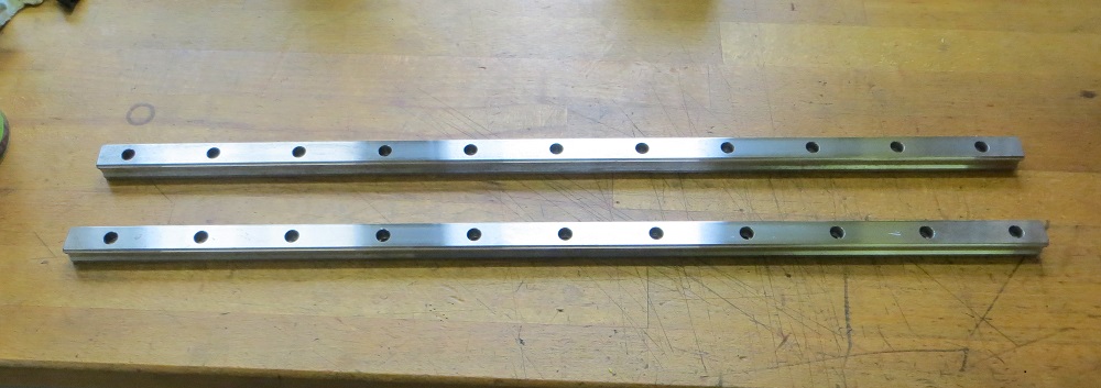 1 pár kolejnic délky 400mm + 4 vozíky HSR20 - cena 4000Kč