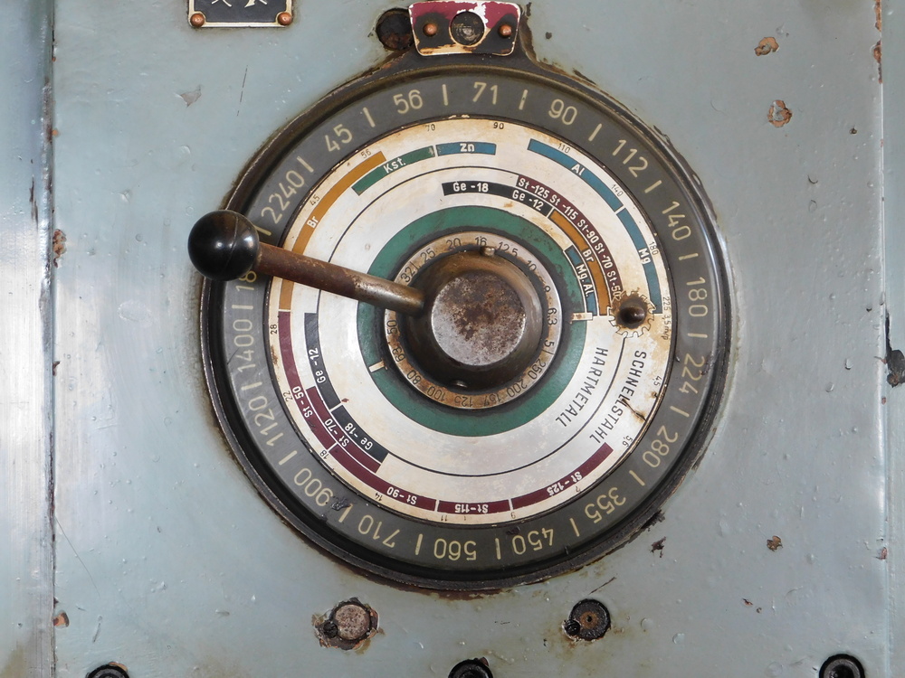 Posuvy ve všech osách, otáčky i posuvy řazené pomocí otáčení kol. Max otáčky 2240.