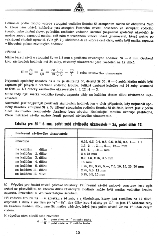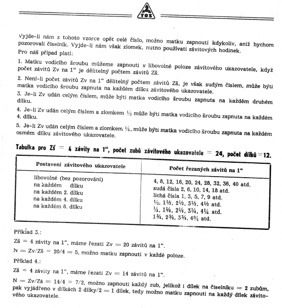 Ještě sem přidám štítek převodů pro řezání závitů, sice je i v návodu zmiňovaném výše, ale pro zajímavost ...