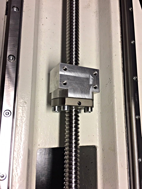 V těle stroje jsou zalité držáky se závity M8 a celé to bylo odlité v přípravku. Ale abych jenom nedůvěřoval výrobci, tak jsem si to nechal minulou zimu přeměřit na strojnické fakultě. Teď při montáži jsem to kontroloval pravítkem a finální kontrola je, že i po utažení se šroub otáčí stále naprosto lehce. Samozřejmě oba držáky lze korigovat o 5mm výškově a o 1mm bočně. To ale budu načisto nastavovat až budu mít hotový stůl.