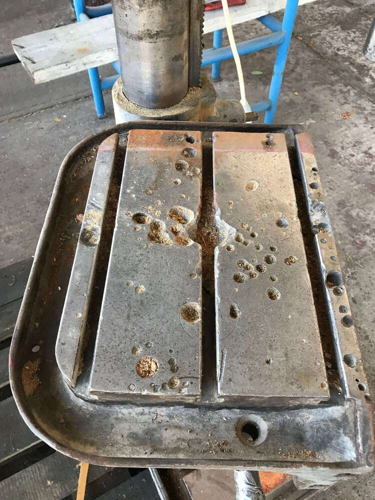 Tohle bych snad ani nevyvařoval (nepájel). Ofrézoval bych to po T-drážky a přišrouboval k tomu dva ocelový plechy... Na ty boční taky úzký. Výměna rozvrtaných je pak snadná :)