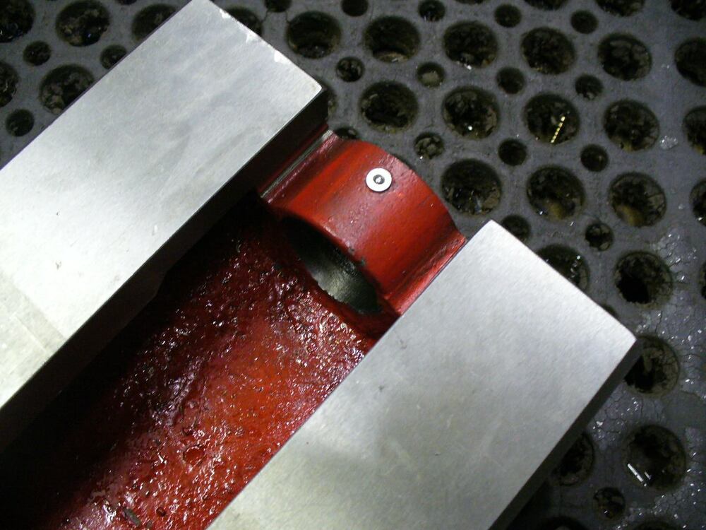 Problém byl, že princip přitažení pohyblivé čelisti k základu je klínem/zubem - což v mém případě byl velice hrubý, nepřesný, neopracovaný a v podstatě nefunkční klín. (= to důležité není na fotce vidět, to uvidíte až po rozdělání svěráku)