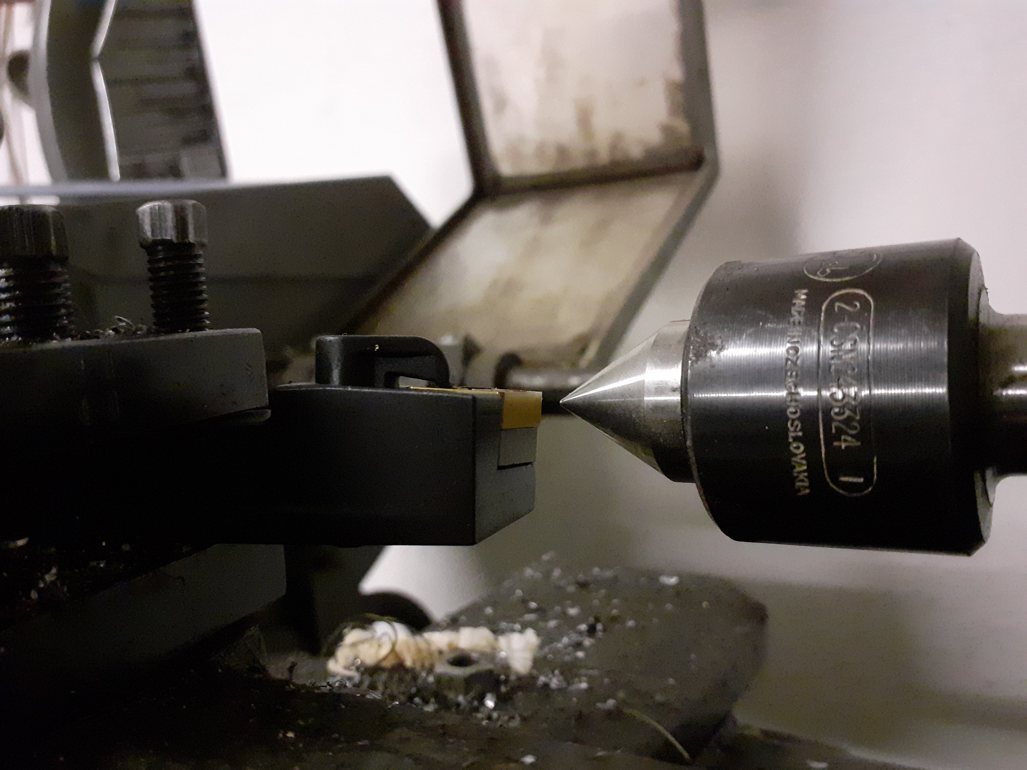 Poté jsem zkusil zvýšit otáčky a přidal rychlejší posuv. To byla správná cesta, protože i při malém úběru (0,1mm) se tvořil krásný povrch, jako zrcadlo. Takže na tohle jsem přišel.
