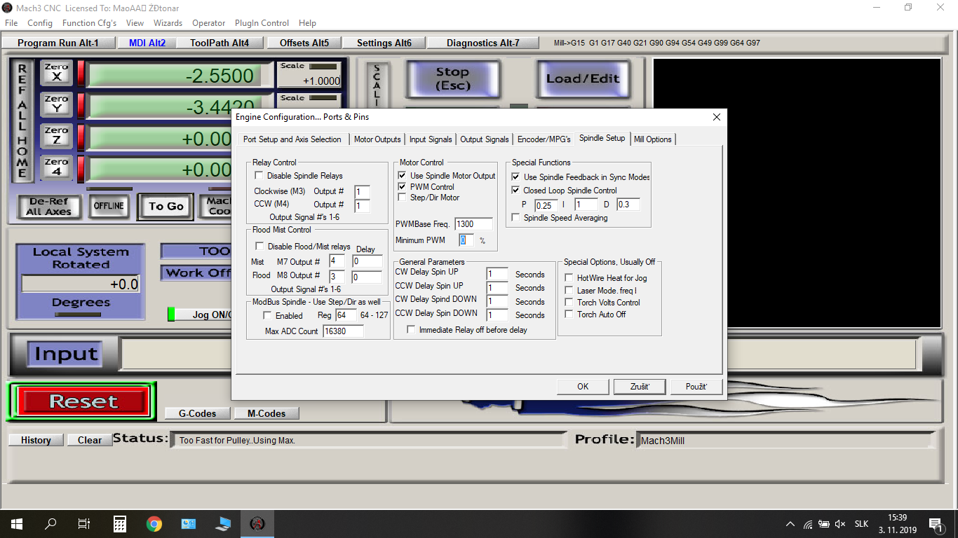 Tak zkus na tu desku připojit 12V v nějakého nezávislého zdroje. Vůbec to nespojuj s vřetenem. A změř, co to z těch 12V bude brát, a jak bude stabilní ten výstup 0-10V. A jestli máš třeba nějaký odpor kolem 1k, tak zkus zatížit ten výstup 0-10V z desky, jestli to poklesne nebo ne.