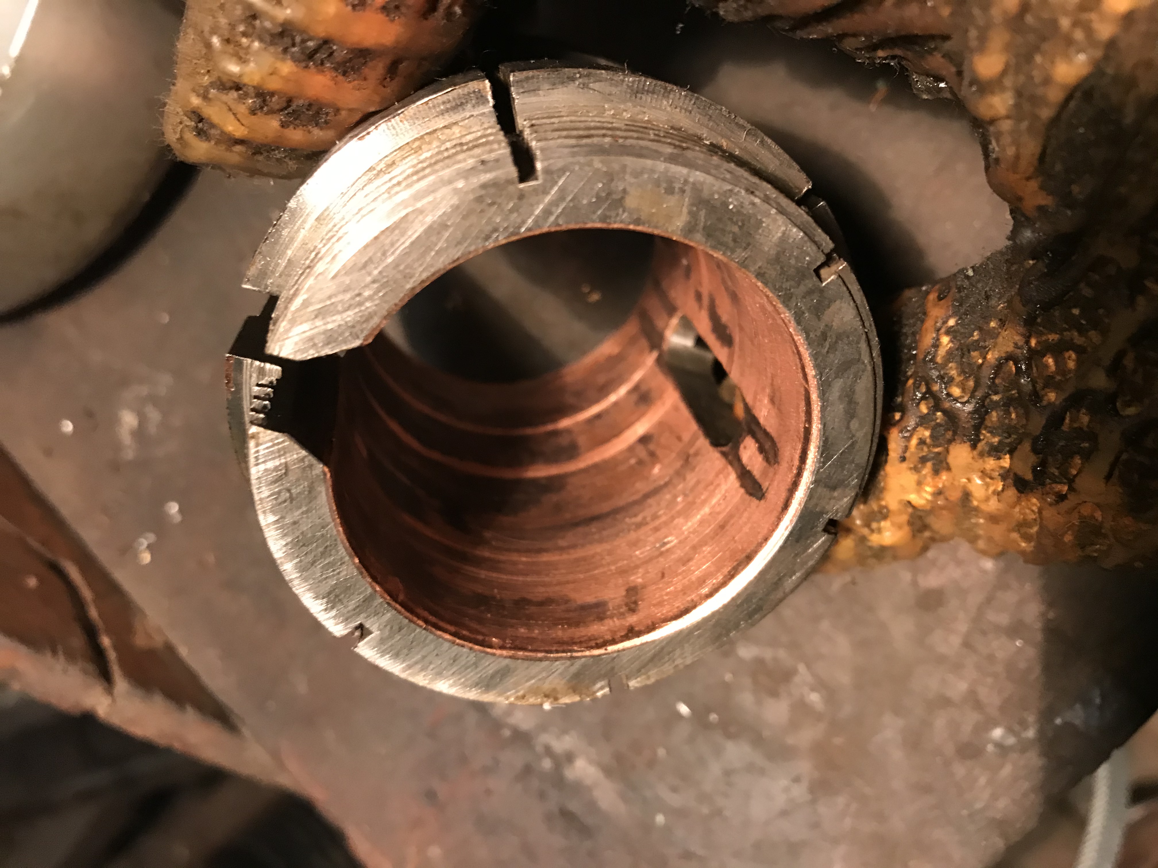 Keby som to opravoval ja, tak by som to púzdro chytil do sústruhu a vybral z neho všetky zbytky toho starého bronzu. Potom by som tam vlepil nové bronzové púzdro, napr. loctite 638 to na takej veľkej ploche musí udržať. Tie mazacie drážky a to rozdelenie by som tam vypílil ručnou pílkou a dokončil pilníkom. A potom už iba zaškrabať.