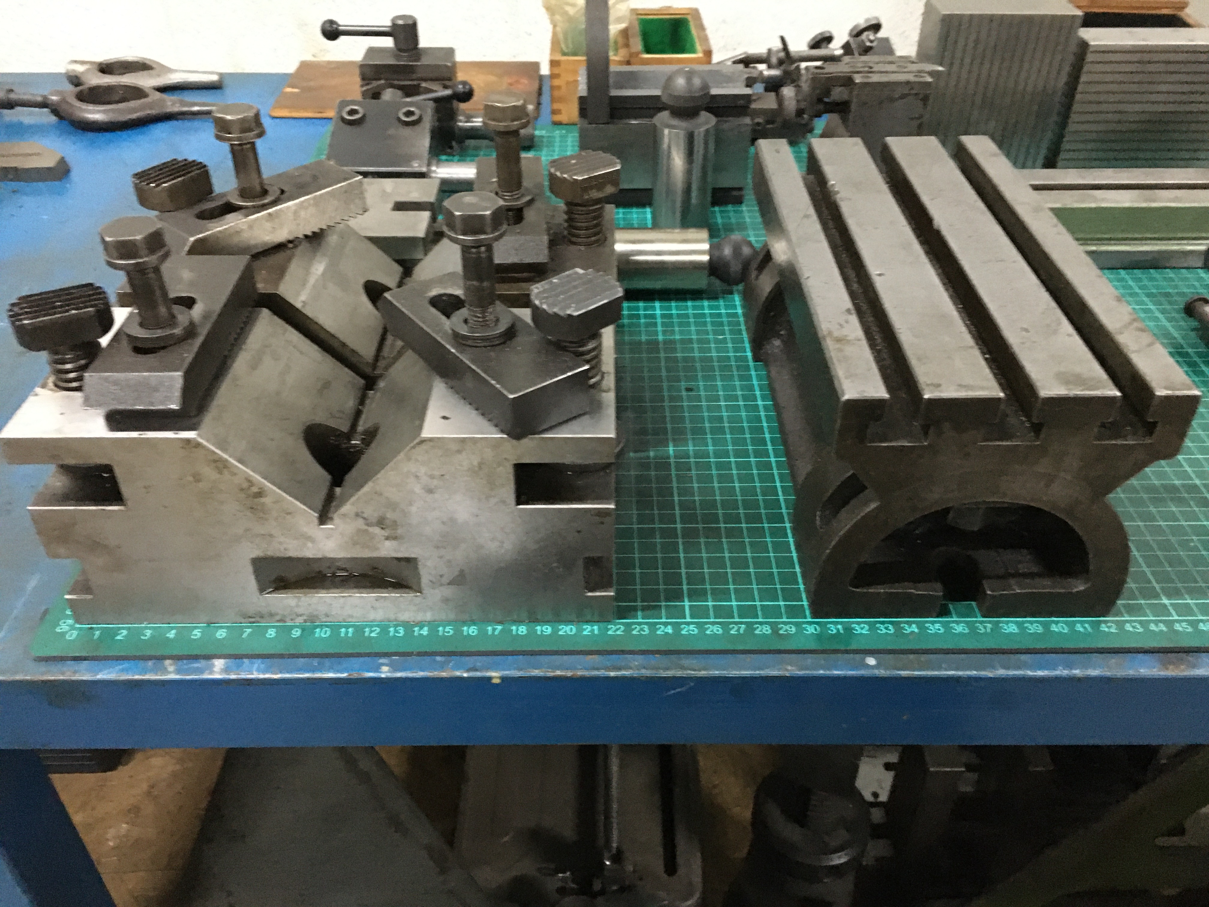 Edit// Prizmaticke drziaky, vyborny stav. 2ks valcove Kalibre? vyborny stav. Pripravok s hrotmi a uhl. mierkou vyborny stav. 2x 2ks dostieciek vyborny stav. 2ks kociek vyborny stav. Pripravok s doskou na klbe vyborny stav. Ostatne pouzivane.