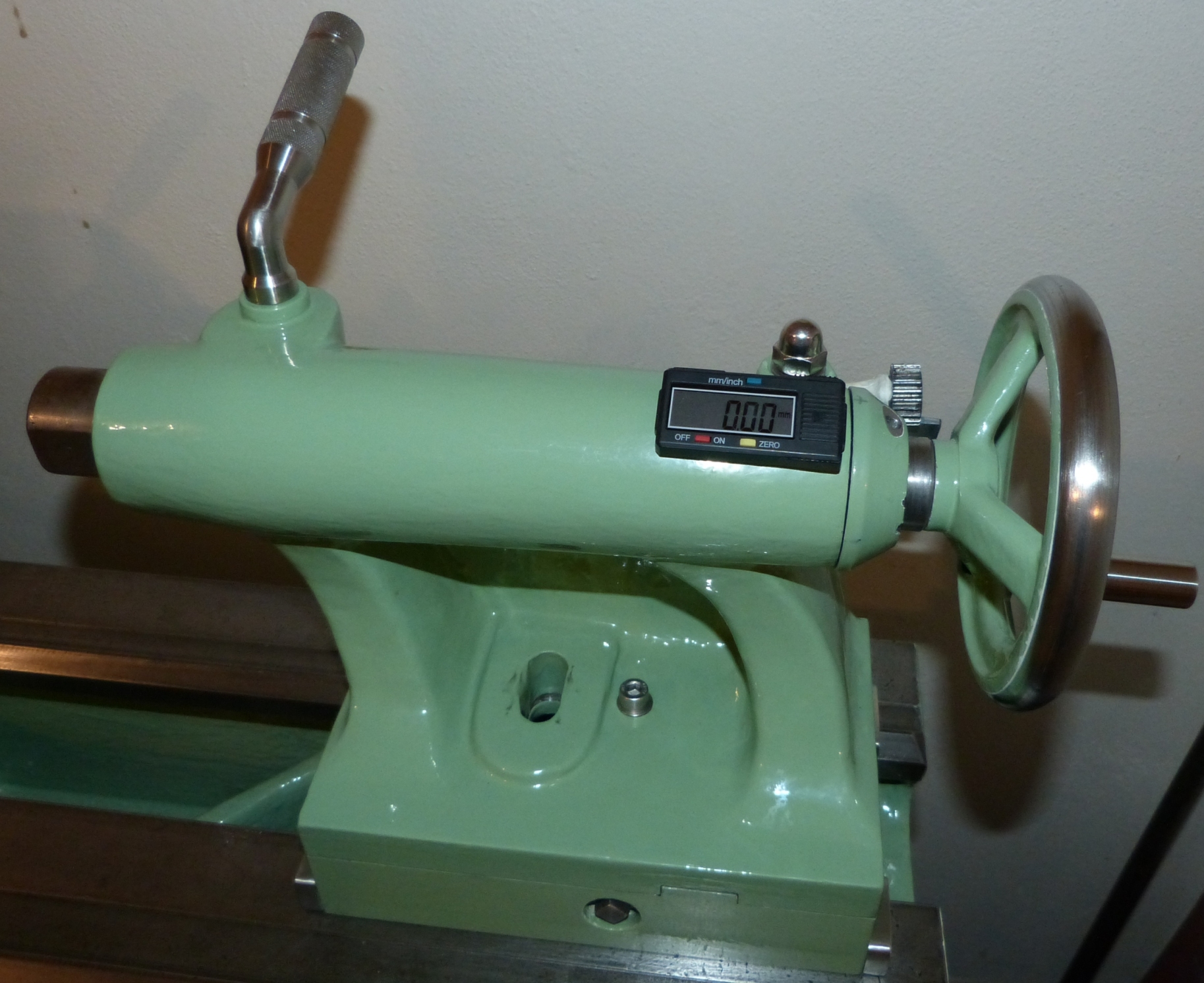Já si říkal, že stupnice noniusu budu řešit až později. Zatím to jen vytisknu, podlepím, nalepím a minimálně rok mi to ze zkušenosti druhého soustruhu vydrží. Je pravda, jak to ten papír nasaje, tak... Jinak na koníka jsem chtěl jen klasický „mechanický“ nonius akorát s delší stupnicí, když už budu mít nový šroub. Kdyby zůstal šroub „starý“ stávající, zvolil bych odměřování pomocí posuvky - koník není zase tak velký na větší displej, na pinole by nic nebylo, bylo by to schované „vzadu“. Je to jen trochu naaranžované, jak jsem to chtěl udělat. Na ovládacím kole by bylo jedno ozubené kolo a pak druhé na šroubu, kde by byl „jezdec“ posuvky. Ten by byl propojen drátama s displejem na čele koníku. Já bych k tomu potřeboval celkem dvě posuvky, někdo jen jednu a plošňák by si udělal. Do těla koníka by se nevrtalo, dva držáky by se k tělu zasilikonovaly a zbytek přidělal k nim včetně zakrytování. Např. ozub kola 64, 20 a šroub „jezdce“ M8x1,25 …64:20=3,2 a to x1,25=4mm a to je stoupání tr.šroubu (při otočení kličkou jednou dokola)..nebo 56, 21 a šroub M10x1.5 atd….jde o oddalování ozubených kol (i za pomocí různých modulů) od sebe a tím o přizpůsobení ke koníkovi.