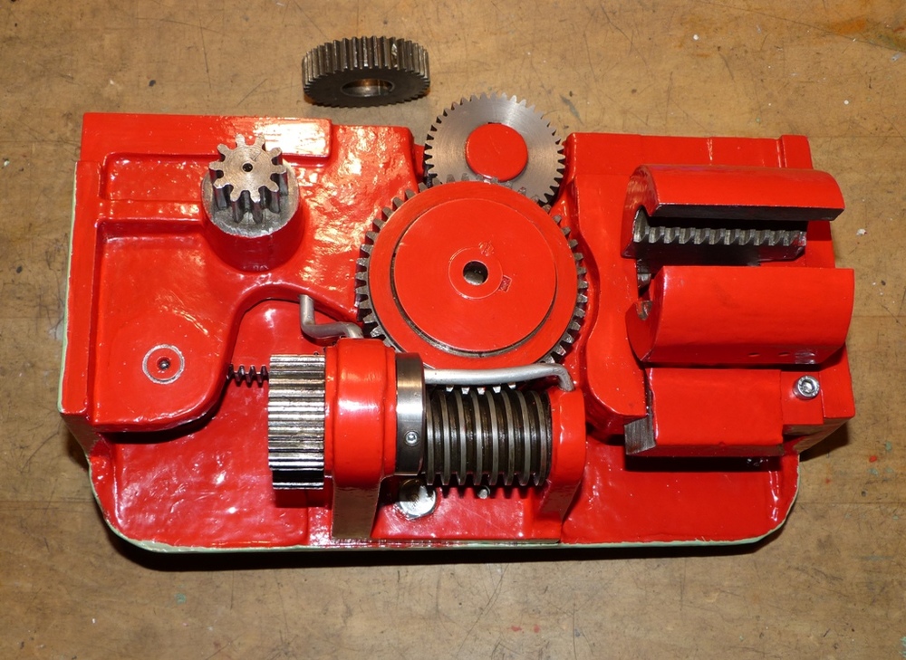 Jinak dodělal jsem skříň zevnitř. Akorát jsem musel sehnat jiné ozubené kolo na příčný suport a upravit ho.