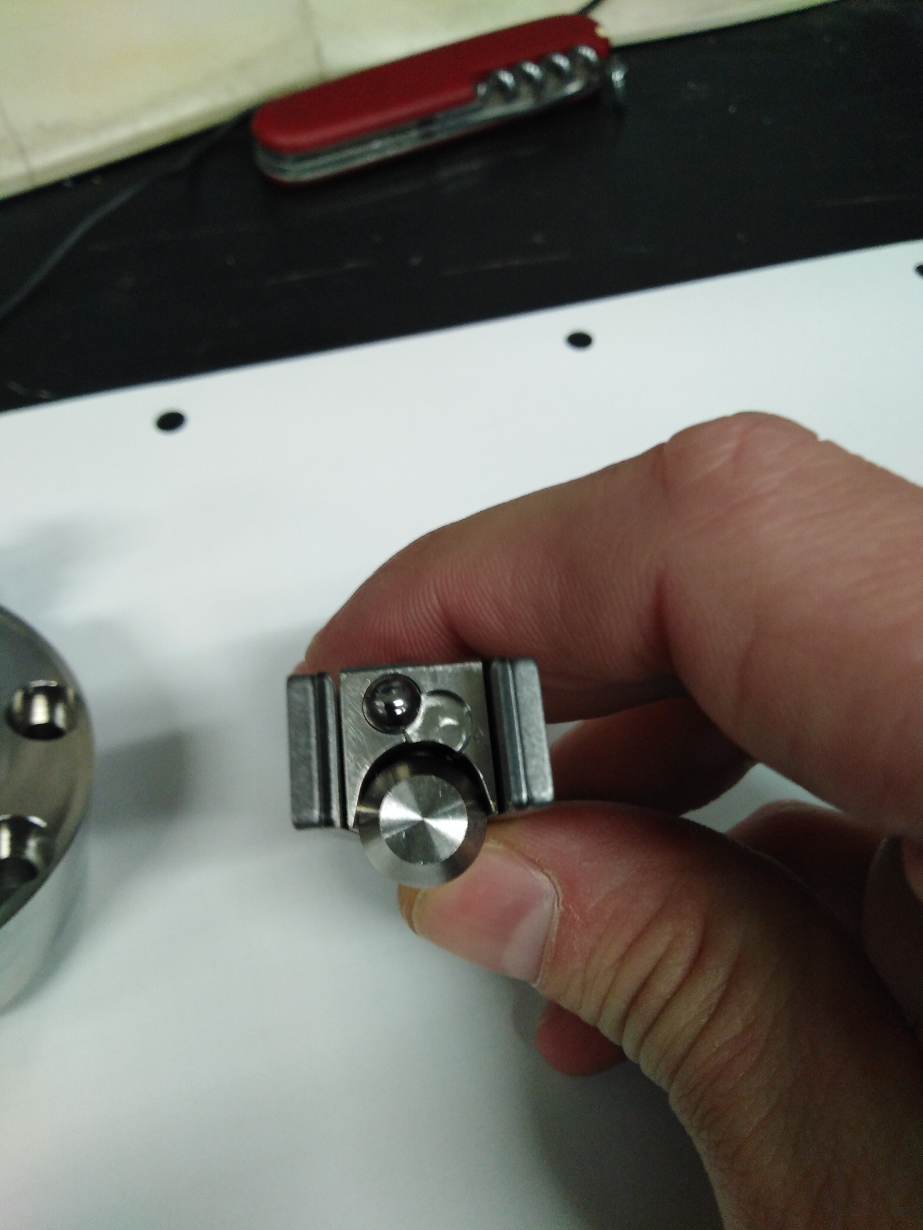 Tu základnu máme také , s tou přesností na 0.01 upnutí nevím moc tomu nevěřím . Centruje se to na takové kuličky na každé straně jsou 2 , jedna na základně a jedna na sondě . Pokud sondu sundám a potřebuji měřit průměr tak jí radši znova zkalibruji je to okamžik a mám jistotu , na měření délky není problém tam to funguje dobře . Jen jedna poznámka , ten mechanismus vydržel 2 roky pak v tom něco ruplo a už ta boční páčka nesvírala .