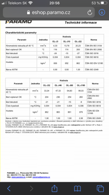 Tiež riešim výmenu olejov v sn 40 a z tým Paramom OL J 3 do vretena som si nie taký istý . Podľa mna OL J 3 podľa manuálu je nejaké staré značenie ktoré s Paramom nemá nič spoločne lebo viskozita by mala byt 3,5 stupňa Englera čo by malo byt po prevode asi okolo 26 mm2.s-1 a Paramo OL J 3 má podľa datasheetu 4.3 mm2.s-1 v prílohe sú tabuľky tak ako to vlastne je ? :) ja si myslím že Paramo OL J 46 môže ísť do všetkého :D samozrejme čo sa týka TOZ SN ...
