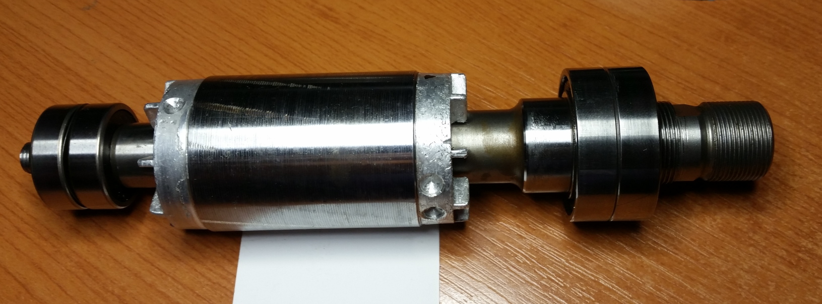Pro produkční sféru je to skvělý komponent na stavbu různých odjehlovaček, zabrušovaček atd... Zde bohatě postačí i uložení ve dvojici radiálních ložisek 6004Z a 6000Z přičemž zadní ložisko je uložené jako plovoucí a "předepnuté" vlnovcovou pružinou. V této úpravě je motor schopen i frézovat (Al Ms) tak asi do 6 frézy. Na robusnější práce je jeho použití již sporné. Při produkčním nasazení //fréza 10 a cca 2 mm do Al// byla životnost ložisek cca týden a ani jakost povrchu nebyla nic moc.