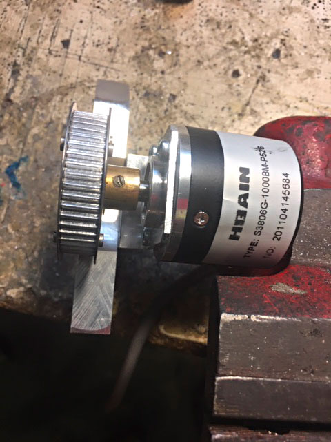 Žádný plán překvapivě nezvládne konfrontaci s realitou. Dnešní "přidělám už konečně ten enkodér" mi zabralo celý den času. Při první úpravě jsem si některé věci trochu zjednodušil a to se mi samozřejmě vymstilo. Nakonec jsem chudáka malýho docela oholil, protože jsem musel dostat do roviny vnitřek odlitku. Původní úprava byla nedostatečná. Nakonec se mi to podařilo srovnat do 0,05mm, včetně všech podložek držáku motoru i enkodéru. Když už jsem měl vše vyndané, udělal jsem plastový ostřikovací kroužek, aby se nehumusil řemínek k enkodéru od přebytků oleje. Nechal jsem sestavu vřeteno + řemenice a enkodér chvíli běžet na maximum, což je 1850 ot/min a vše zatím dobré. Zatím ten výkend a první ostré pokusy vypadají reálně.