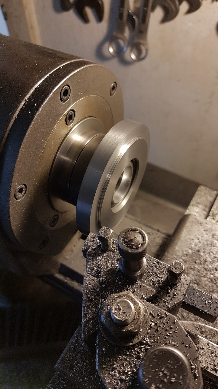 Soustruh jsem nahrubo očistil, odmontoval vše, co nepotřebuji (většinu elektroinstalace, podavač, čerpadlo oleje pro podavač), připojil na měnič (dvourychlostní motor vyžaduje 3x380V, to nemám, takže jsem na třetinovém výkonu, s čímž ale pro nějaký čas myslím vystačím) a opravil vřeteno. Byla to docela detektivka, dostupné řezy z katalogů neodpovídají, zdroj problémů, ložisko v řemenici, nebylo ani na jednom z nich, nicméně podařilo se.