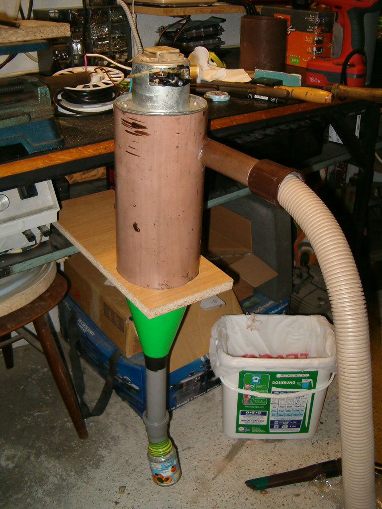 Myslim že zrovna kovo.hemil měl ten kupovanej, a prej to je uplně na hovno...(možná že to hovno by to odseparovalo i líp, narozdíl od popela, na kterej je to primárně určený. Myslim, že důležitej bude ten kužel a ta spirála, která ti nasměruje proud vzduchu nejen do víru, ale hlavně tak, aby klesal dolu do nádoby...