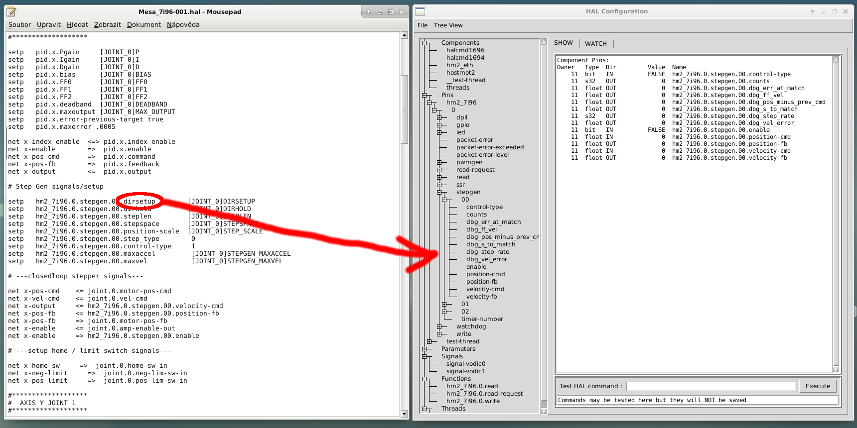 zz912 píše: 11. 8. 2021, 6:45 Dalsi vec, co je ze zacatku matouci, tak, ze driver hostmot2 generuje hodne zbytecnych HAL pinu. Proste je ignorujte, to je vse. :D