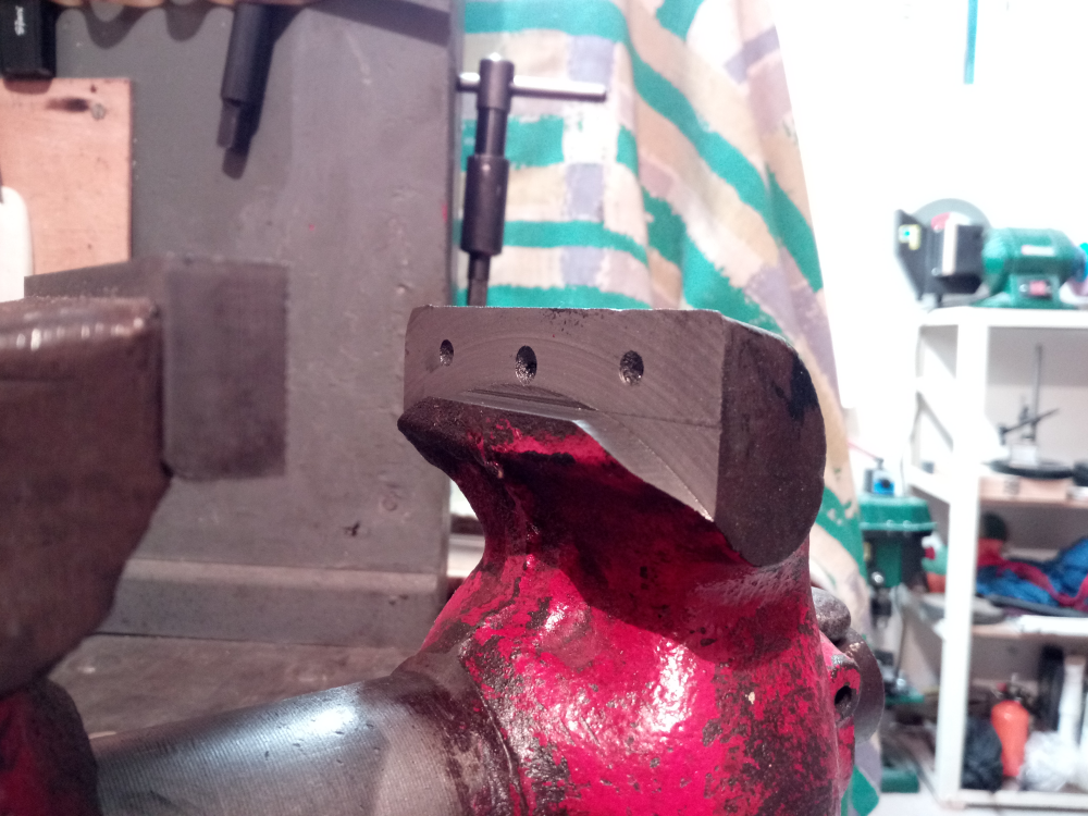 Nechcelo sa mi však na to moje hranie kupovať nový sverák, tak som sa rozhodol sčasti osústružiť tú plochu kam dosadá kalená čeľusť do roviny a zbytok líznuť pilníkom (frézku nemám). Zobral som tým síce aj časť osdenia, ale stejne bolo olámané a nič lepšie ma s danými možnosťami nenapadlo.