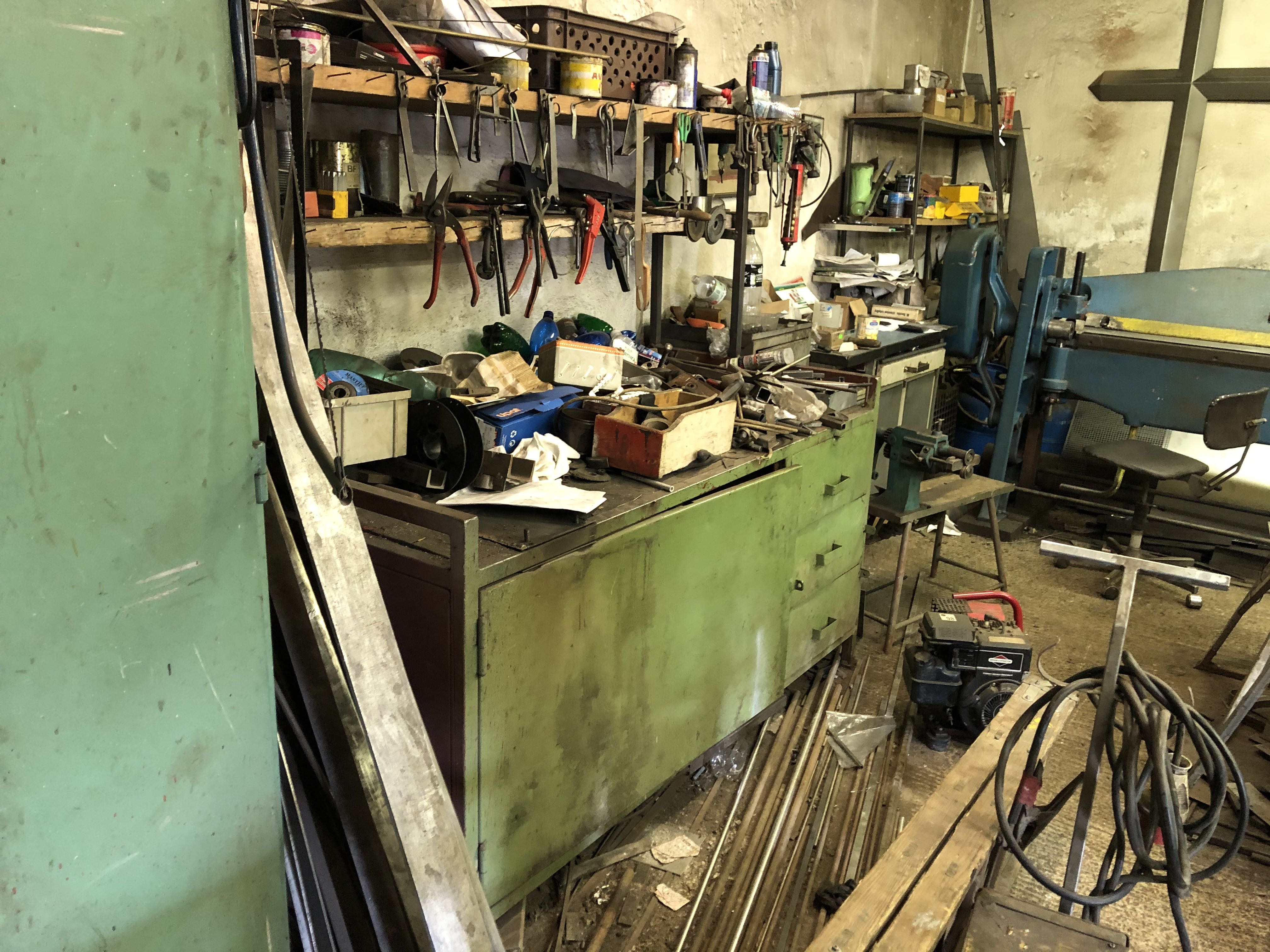 Rôzne ručné náradie, plechové skrine, náradie, matreriál.