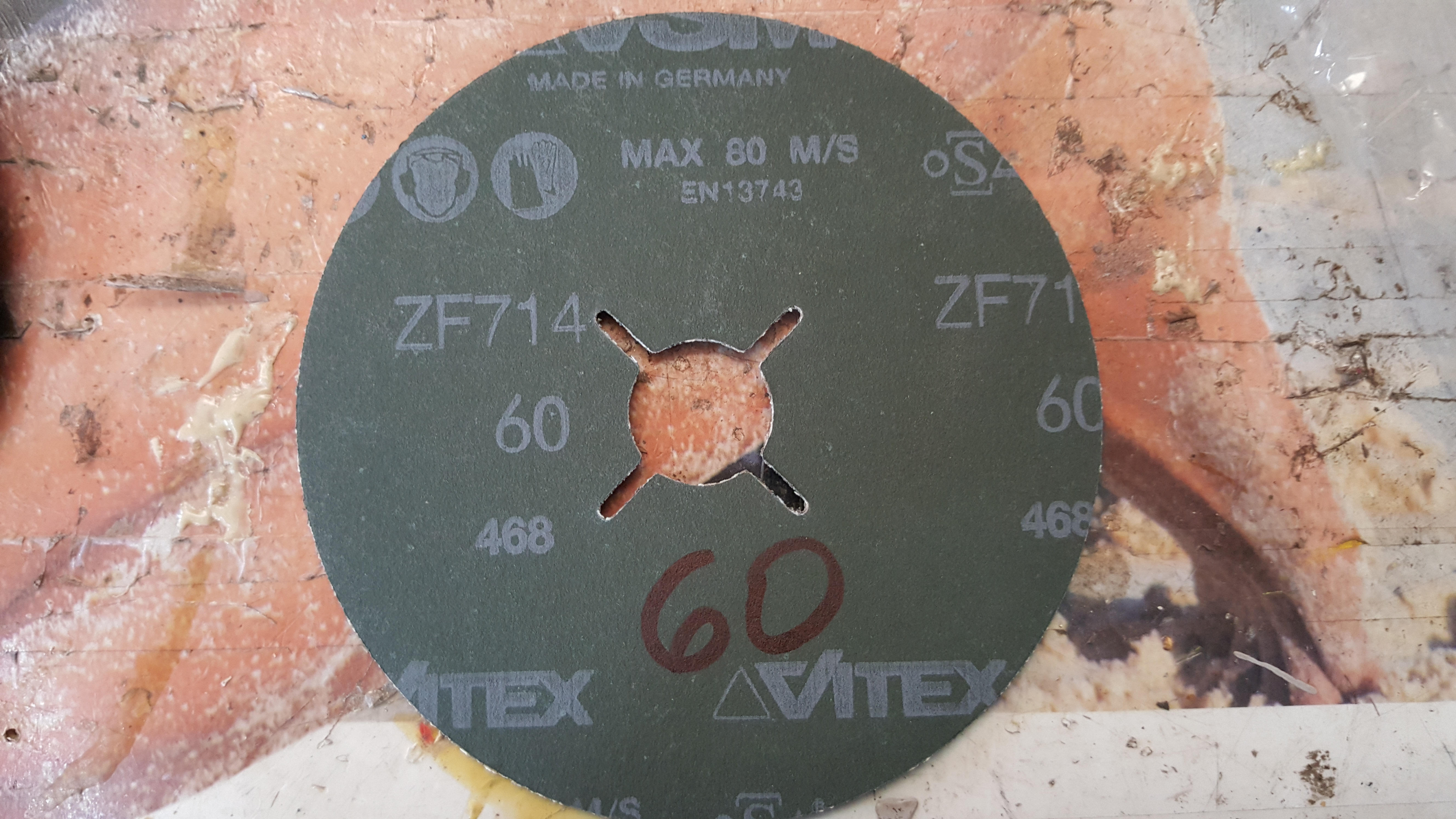 Pár fotiek na porovnanie a ešte foto tých zirkonových brusnych kotúčov 125mm do flexy čo som spomínal. Fakt su super. Unašač stál asi 5 eur a jede kotucik stoji od 0,4 - 1.0 eura podla zrnitosti a výrobcu. Zirkon ma fakt rýchly úber a neprehrieva tak material.