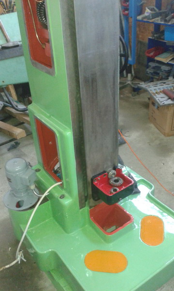 Predlžil som reťaz posunu vretena a dvoma ozubenými kolesami po zmene smeru vyviedol von na osku náhonu. Pridal som dosku na uchytenie lýry pre prípad , keby som chcel presné otáčky v závislosti na otáčkach vretena. Reťaz a reťazové kolesá nebol problém zohnať ,pasovali mi z motocykla Babeta. Predpokladám že tieto úpravy sa dajú urobiť aj na frézkach 675 a 676.