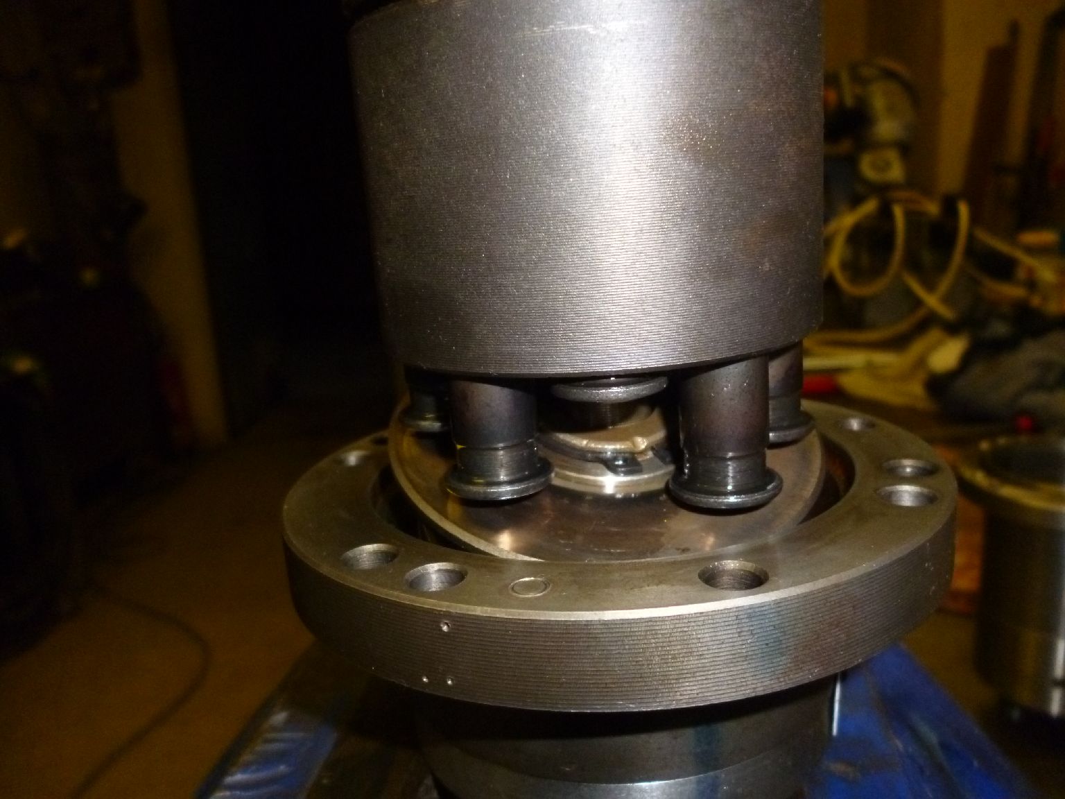přemýšlím nad těma válečkama kolem vřeteníku není to nějaká hydromechanická aretace? prstě to v nastavené pozici ten vřeteník zajistí třeba klínama. Válce mají malý průměr takže tam nějaké moc velké síly nebudou.