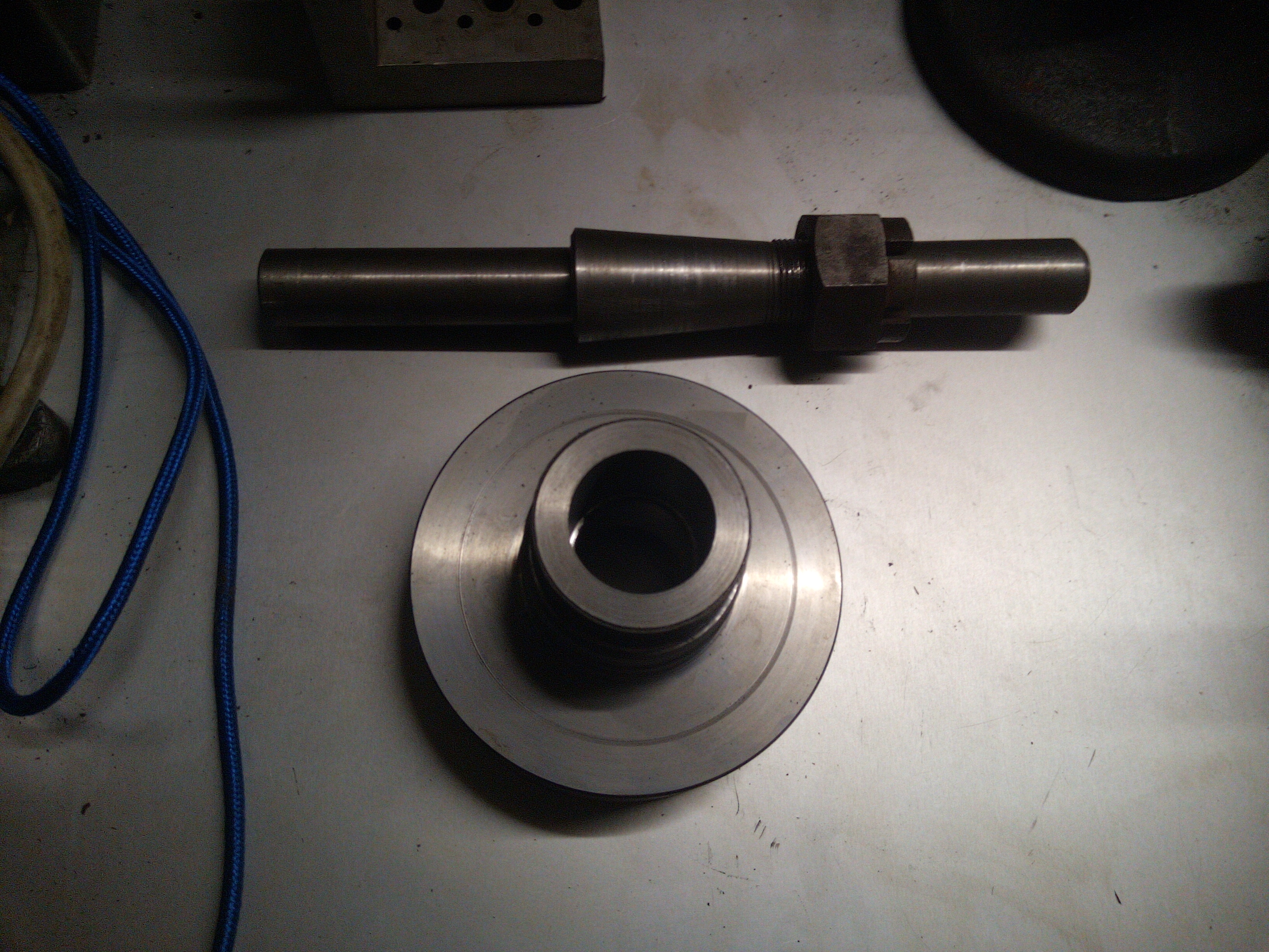 Dělal jsem si včera takovou atyp přírubu. Je o 10 mm dál od vřeteníku. Abych mohl lépe pošolíchat přední hranu magnetu. K tomu trn, protože ten co mám nemá závit a chtěl jsem to točit v hrotech.