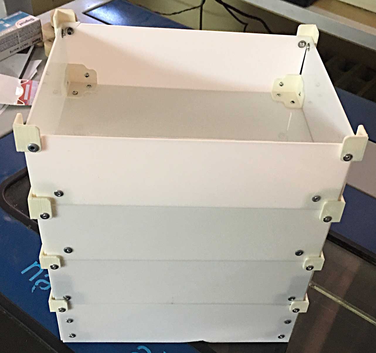 mám trhací nýty 6 a 8mm dlouhé. U těch 8mm podložka samozřejmě být musí, ty 6mm jsou akorát a ty růžky jsou z ABS a maj osazení a oproti plexi pružej. Tohle mi poradil borec, co celej život dělá s plastama. Akorát těch 6mm jsem měl pár, dojedu jich koupit zejtra krabici. Ty rádiusy bych musel dělat. Takhle sundám ochranej igelit, na roh kápnu vteřiňák stržím to do úhelníku a přilepím růžek. Pak svrtám díry a nacvakám trháče. Přilípnu bočnice, pak díry a opět trháče. Nakonec vrchní růžky, ty jsou o 0,5mm odsazené aby se tam vešla horní krabka a zase díry a trháče. Všechno bždy kámnu vteřiňákem a krabka mi trvá 7 minut. :-)