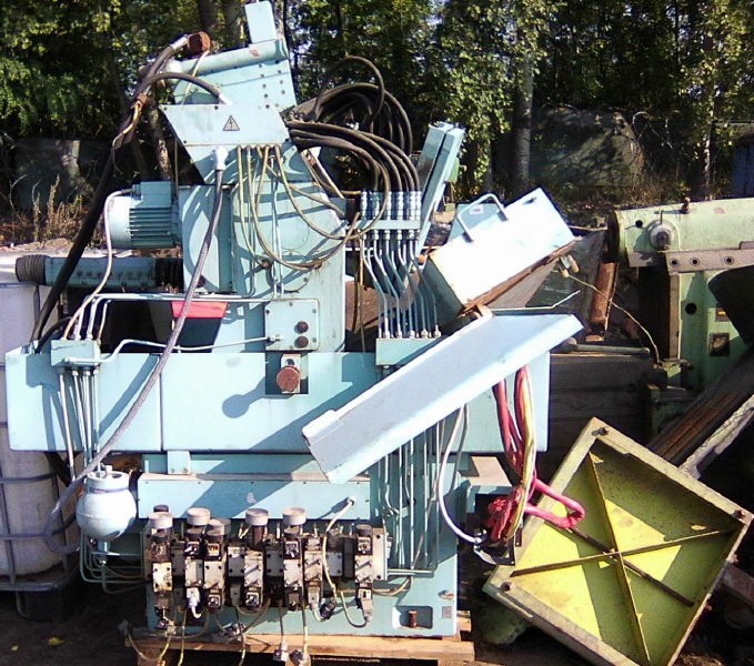 Dále bruska na plocho (BPH 20 ??) bez štítku a bez vřetena. Nějaký dobrák ji začal zvedat za suport, takže ohnutá pístnice. Oba stroje nejspíš na díly.