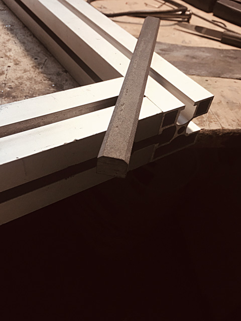 Tak zase další kousek hotovej. Protože to stavím z dílů "co dům dal" je kompletní stavba poněkud chaotická. Tedy veškeré rozměry stroje jsou přizpůsobené klíčovým dílům. Zatím jediný nákup materiálu byl hliníkový U profill ve kterém je uložená osa Y. Základní rám je z profilů 45x45mm a jenom zadní část je příčník 45x18 mm ale plný. Motor X osy bude vedle šroubu a spojení bude řemínkem, ale krásně se to vejde pod stůl. Portál bude přišroubovaný do bočních drážek. Základní rám bude rozšířený směrem dovnitř dvěmi V profily tl. 5 mm, tak aby díry 16mm podepřených tyčí šly přišroubovat do matic v drážce profilu a druhá strana pak do toho profilu. Po sešroubování celé základny to na jedno uchycení "líznu" frézou abych to hodil do lajny. Udělal jsem si speciální "matkový" profil, poměrně silný aby se daly šrouby utáhnout pořádně. Materiál je samozřejmě železo 11xxx, profil 16x16 mm, po opracování 12,5x13,8mm.