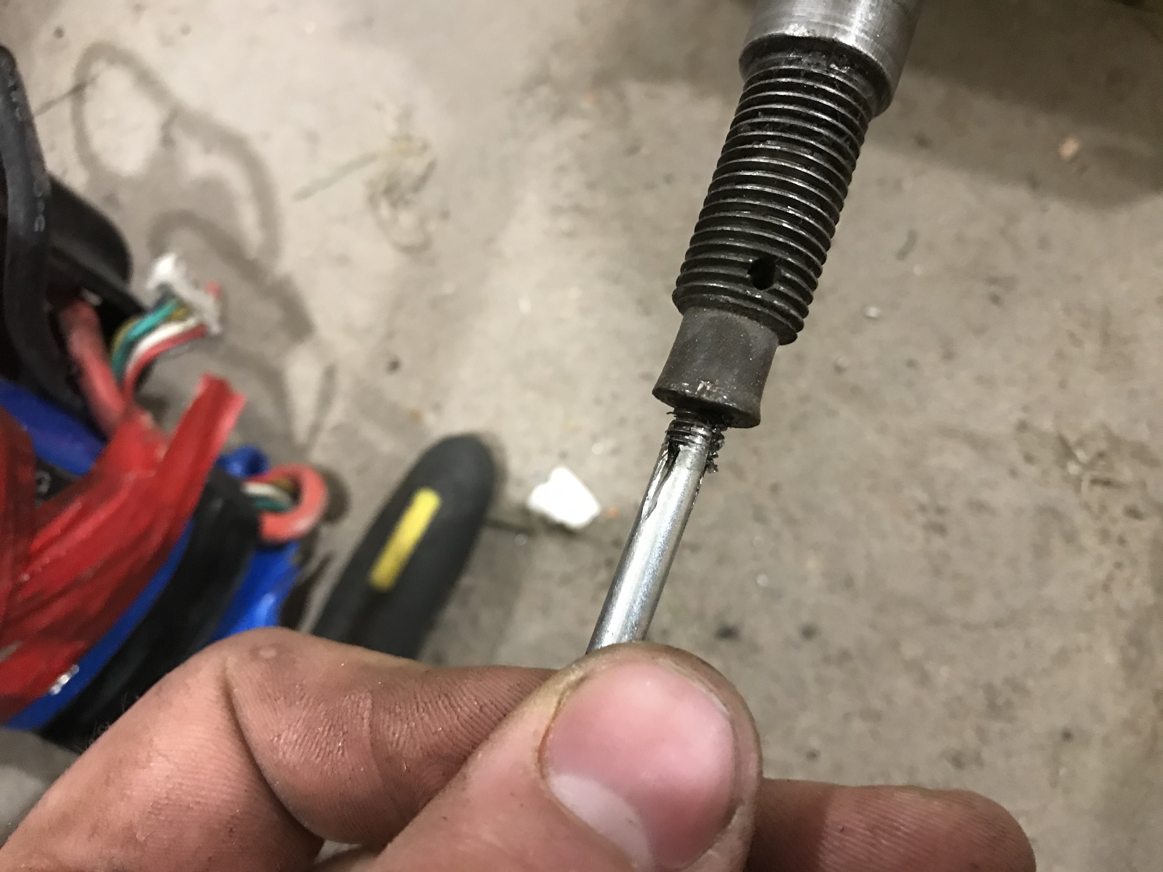 Ak sú tupé tak mäkký materiál len odtláčajú do boku a nerežú. Potom to naraz kusne a ani za boha nevyjde von. Taký sprostý tip, ja keď´ už nevyjde nijak von chytím jamkár z starého dieselového vstrekovača a kedže je závitník tvrdý normálne ho rozbijem na malé kúsky. Ale toto je posledná možnosť, väčšinou ale závit nezachránim a musím prerezať na väčší priemer.