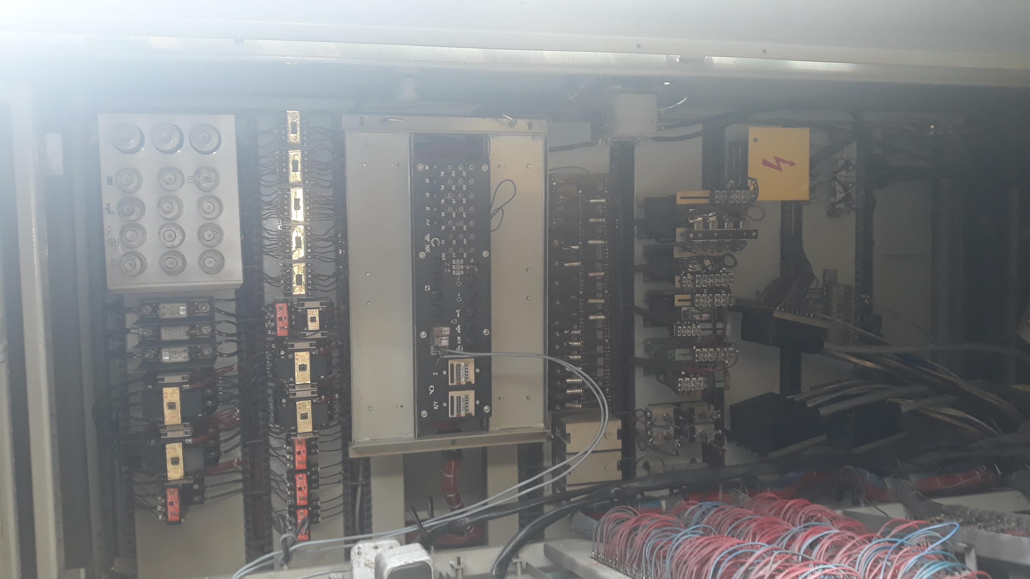 Zdravím, kontroloval bych ty velké černé nožové konektory. Spojení stroje se skříní. Jak v mašině, tak v rozvaděči. A ještě ty dva menší konektory uvnitř ovl. panelu! Osy jsou blokované spínačema pro kliky. Co je ve skříni za elektriku? Relé, nebo PS2000? Schémátko by nebylo? Foto rozvaděče?