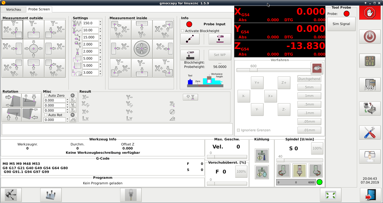 2. Pokud kliknu na jakékoliv tlačítko pro najetí nuly tak to přeskočí zpět do hlavní obrazovky kde vidím najetí na polotovar nevím jestli to takhle má správně fungovat ale - lze tohle nějak změnit aby to nevyskakovalo ale zůstalo to v prostředí probe screen?