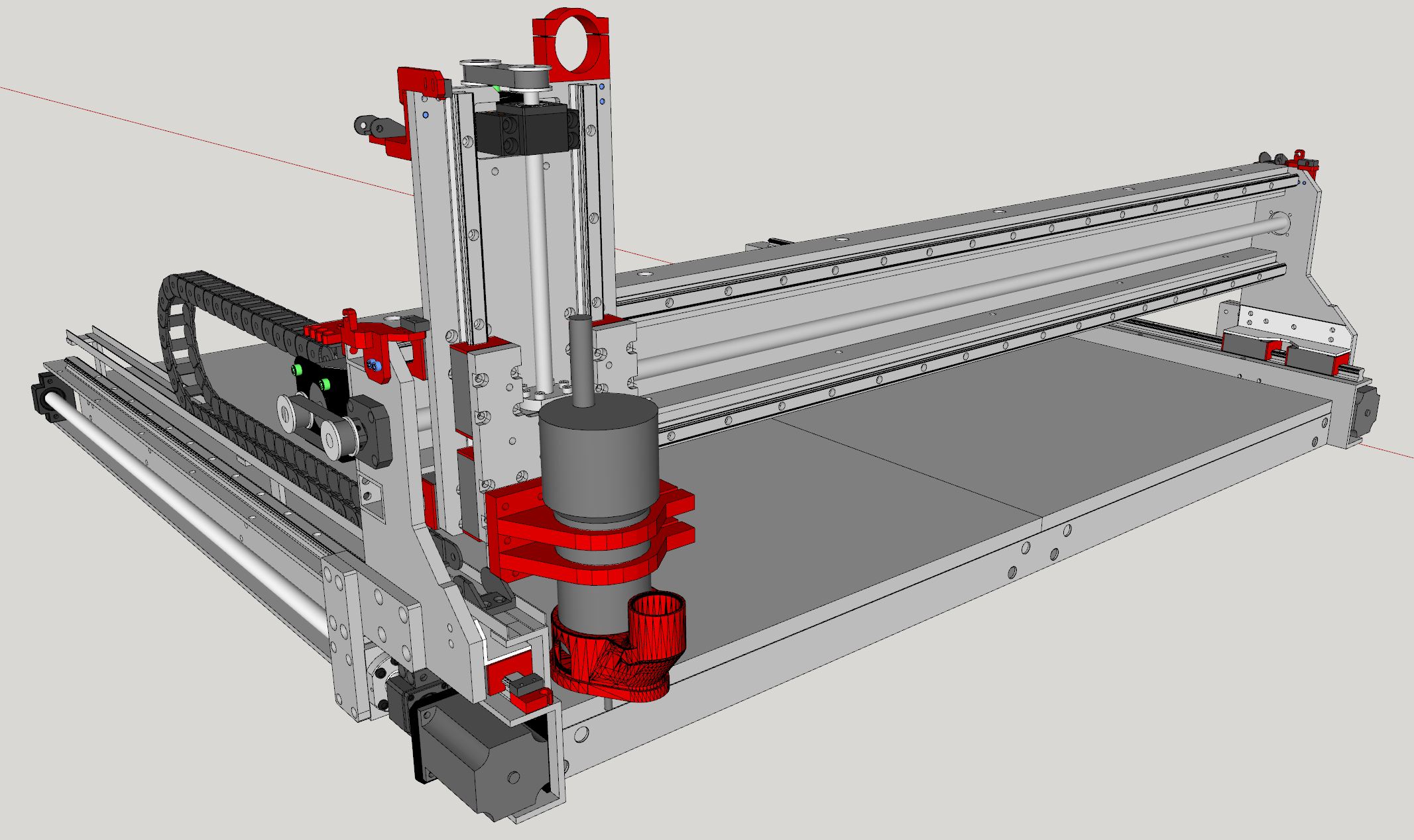 Pri stavbe tejto verzie som sa stretol s mnozstvom problemov, hlavne kvoli hmotnosti celej konstrukcie, ktora bola sposobena hmotnostou drevotriesky pouzitej na spodnu krabicu stroja na ktorom chodila portalova freza. samotna drevotrieska mala o sebe cez 100Kg a ked k tomu priratame kmotnost tych gulatin aj s motormi a vretenom tak to bolo cez 150Kg .